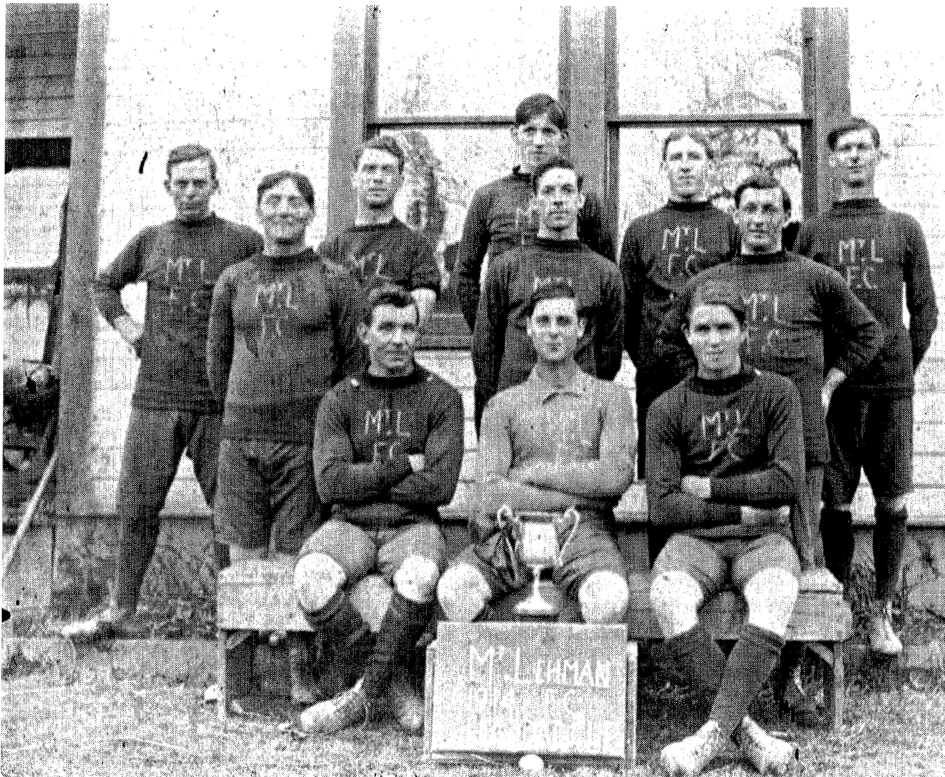 Mt. Lehman F.C. (soccer) team posing outside the old building of Mt. Lehman School after winning the Haddad Cup in 1914 (thank you Mr. Abby Chan, Principal of Mt. Lehman School, for recognizing the location). Photograph credits to Daphne Barclay and her family.