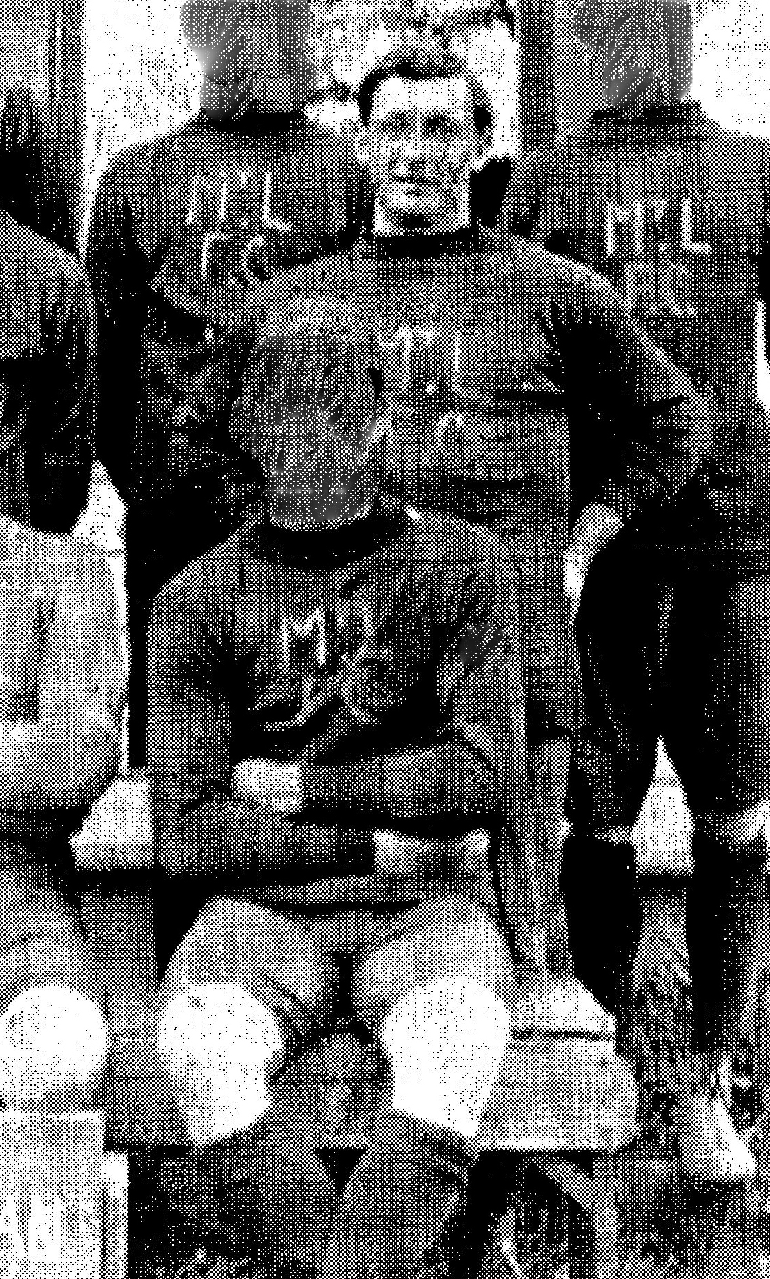 Abbotsford soldier (later in 1914) Sergeant William Arnold Fergusson is either the goalkeeper (front row centre, with Osmond Kidwell front row right), or Fergusson is the player standing behind Kidwell. Which one is W.A. Fergusson: the goalkeeper, or the other player, the left half?